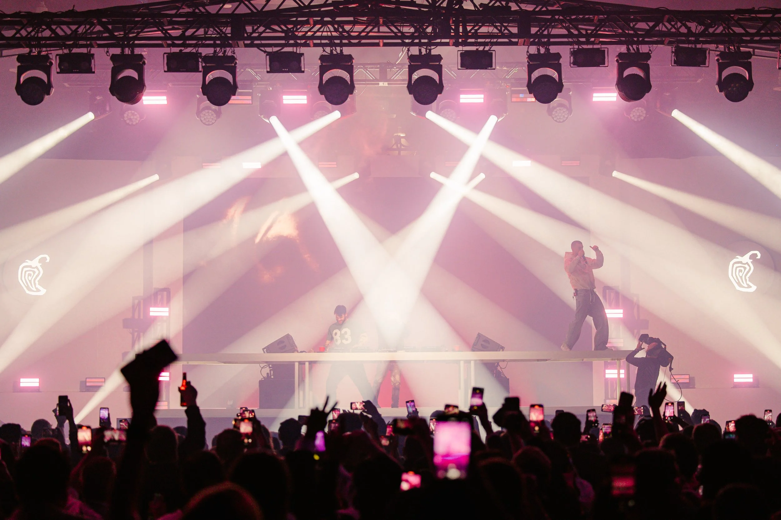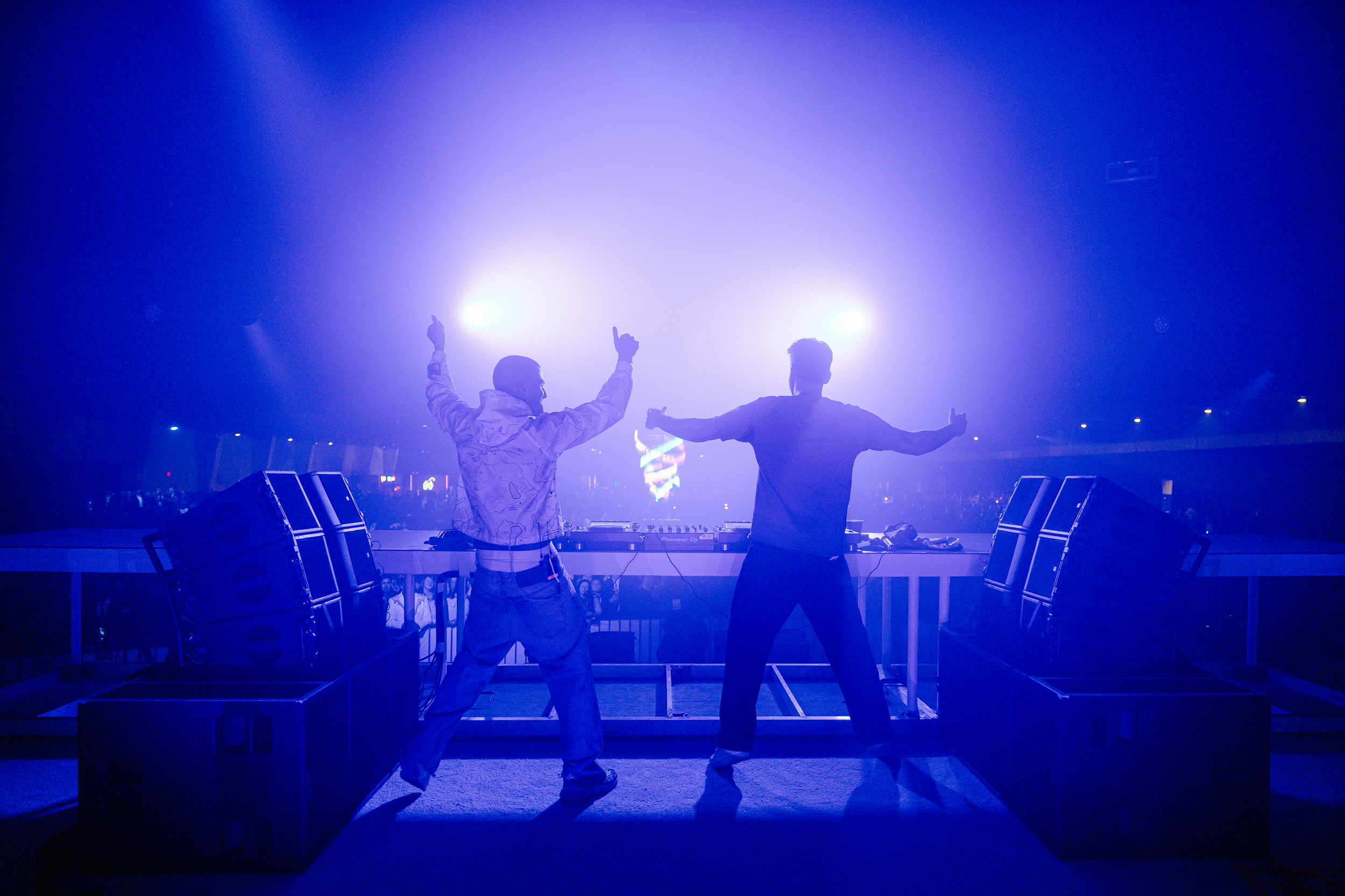 But we didn't stop there. Just when the day seemed to be winding down, the space transformed. The muslin walls parted, revealing a fully functional stage to showcase The Chainsmokers, ready to deliver a surprise performance in our impromptu night club space.