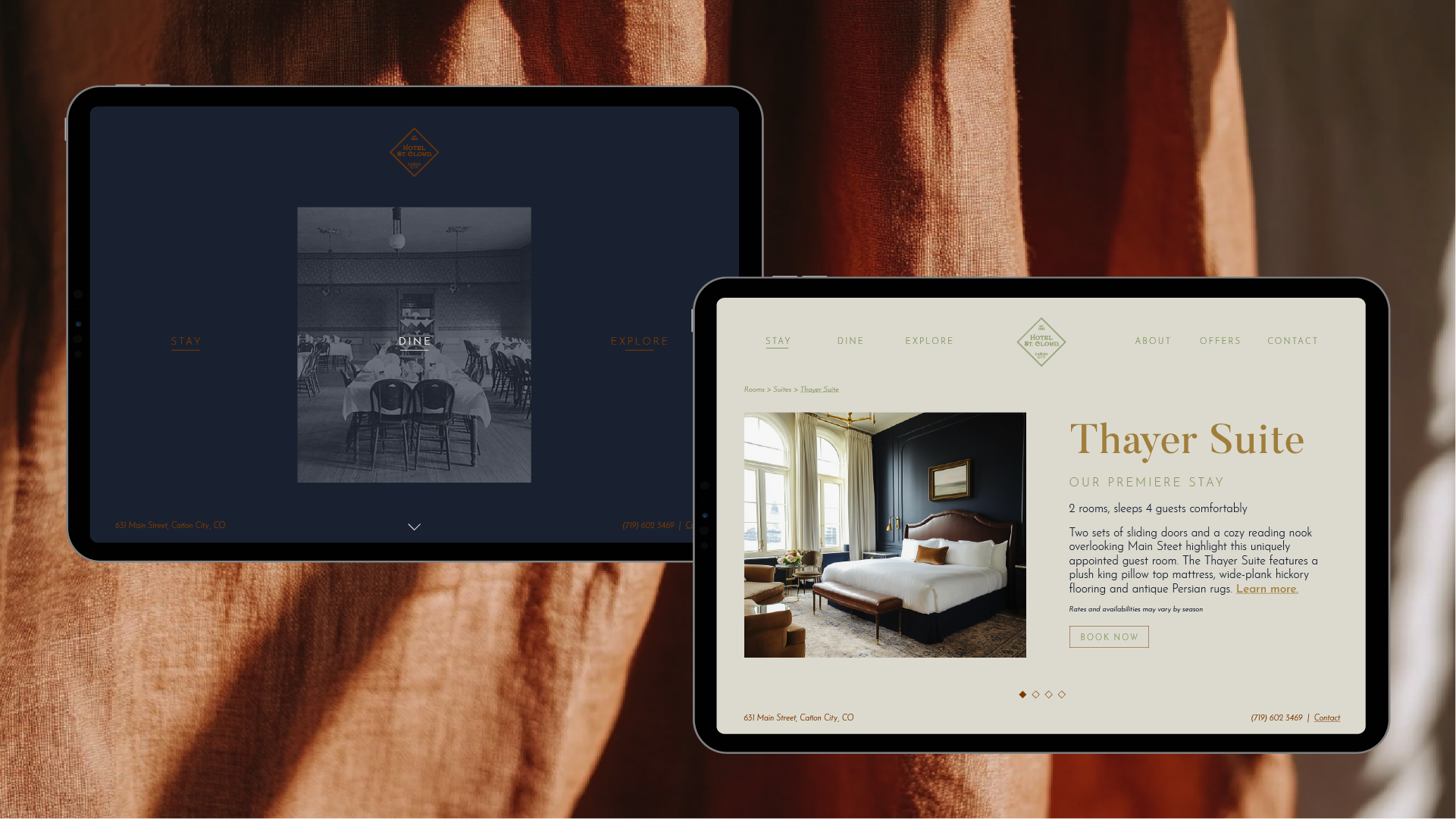 Hotel St. Cloud, nestled in the heart of Cañon City, Colorado, has stood for over a century, weathering a full relocation and brick-by-brick reconstruction, a fire on its 4th floor, economic hardships, and more than anything, time. After its purchase at auction for just $80,000 in 2018, the team at Unbridled Hospitality embarked on an ambitious journey to transform this 132-year-old landmark into a luxury destination with two in-house restaurants and a speakeasy. Our team’s challenge was to create a brand that would honor the hotel's storied past, full of Wild West tales and larger-than-life personalities, while embracing its vibrant future. Our ultimate goal was to create a brand that positioned Hotel St. Cloud as the "living room of Cañon City," a place where the past and present converge, welcoming both locals and newcomers alike.