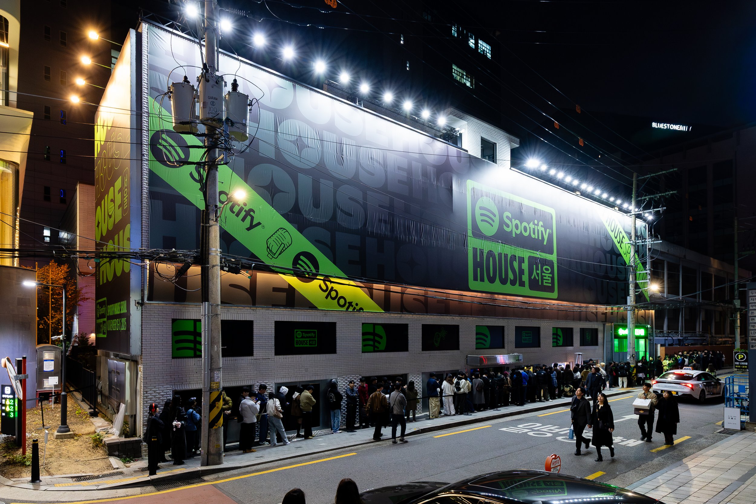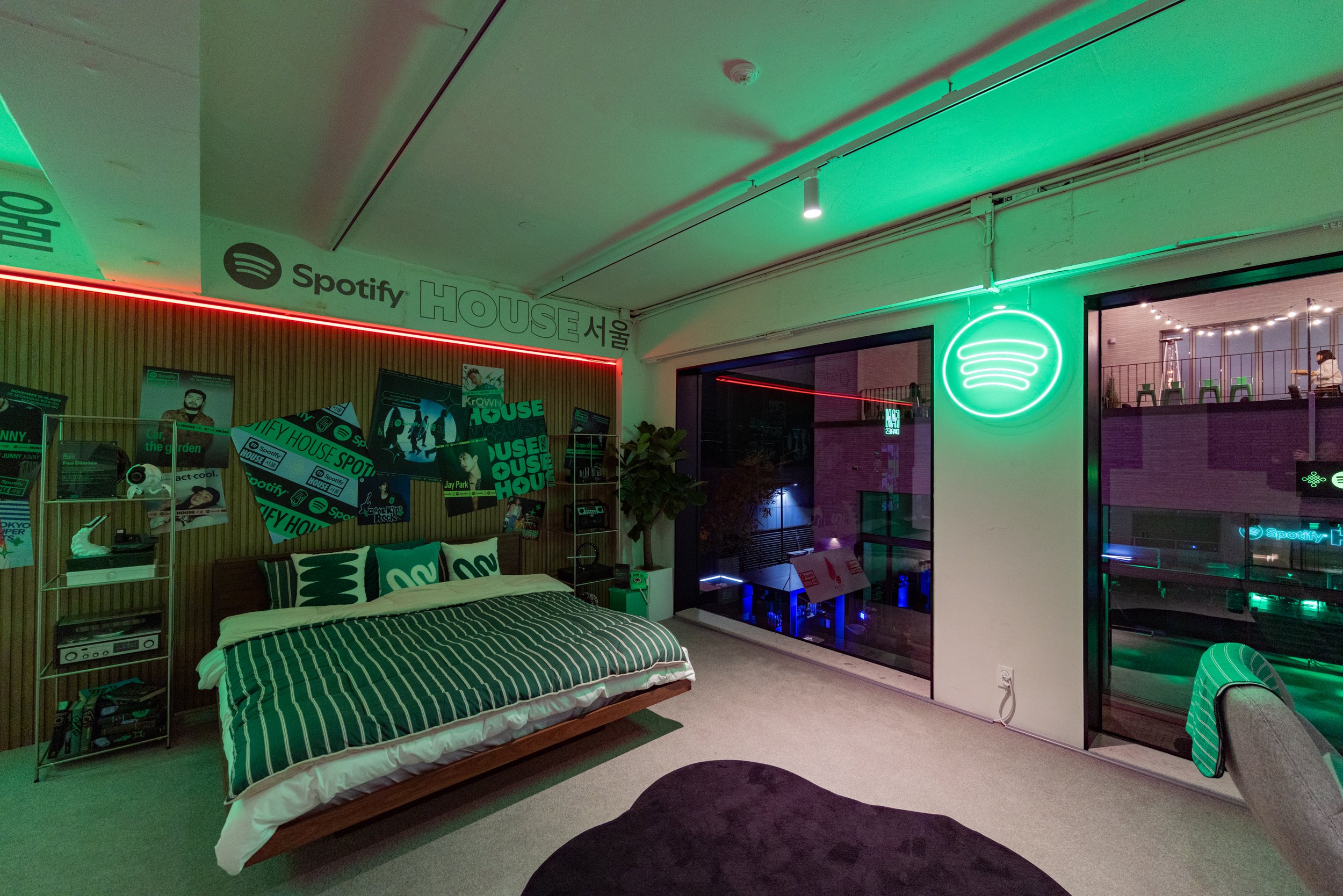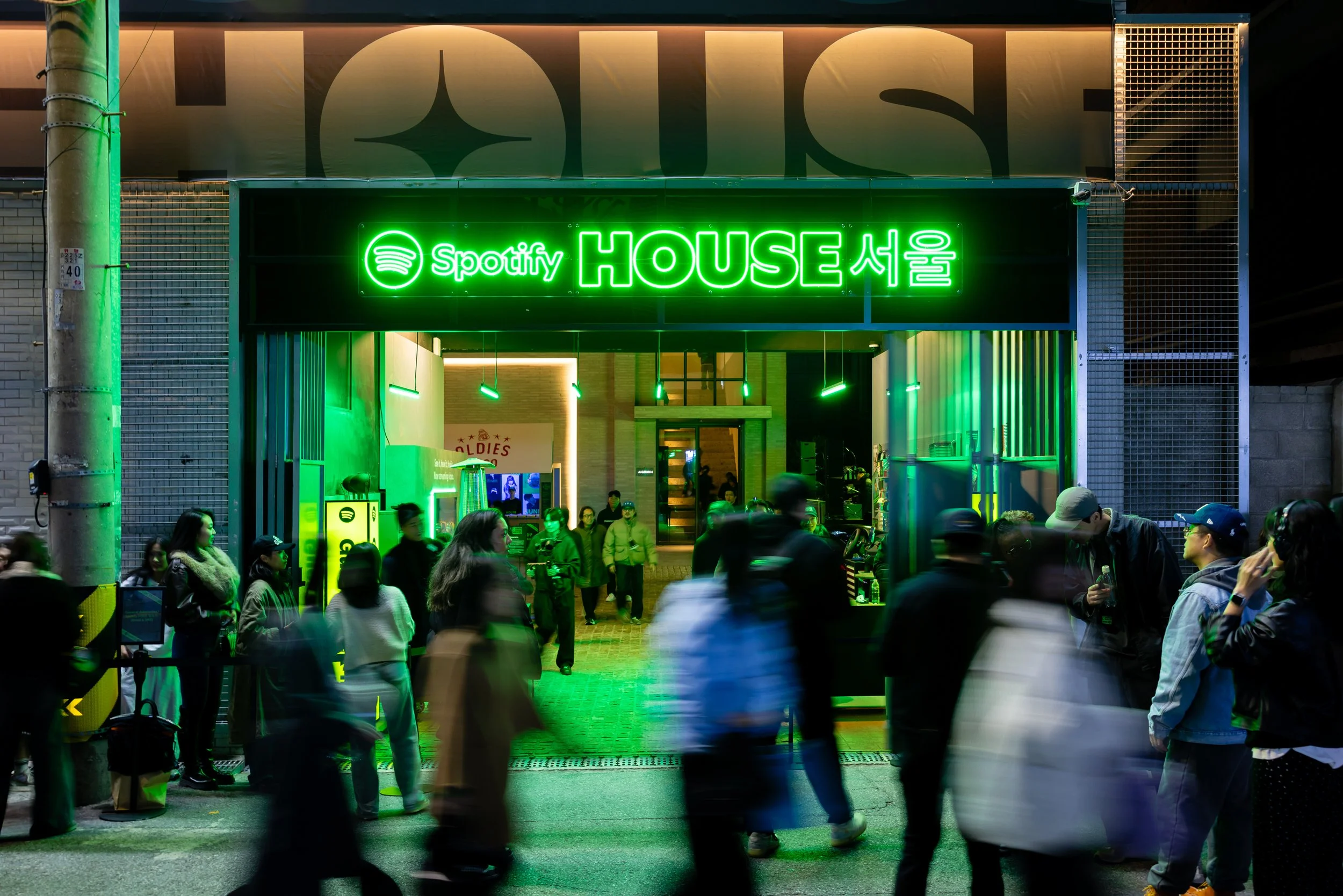 Spotify House Seoul was designed as a three-day living mixtape, where Korean culture met the future of music streaming. Each room, styled after true Korean residential spaces, reflected part of the Spotify experience: the Garage connected fans to their tastes on-the-go, the Kitchen invited in-app exploration, the Living Room hummed with HiFi sound clarity, the Closet was stocked with Korean streetwear from BAPE®, and the Bedroom celebrated fandom in all forms with zines, music diaries, and easter eggs. Outside, the Audiophile Alley came alive with street food, pop-up jams, and neon-lit tents. Each layer of the space was made to be tactile, sensory, and a home for true fans.
