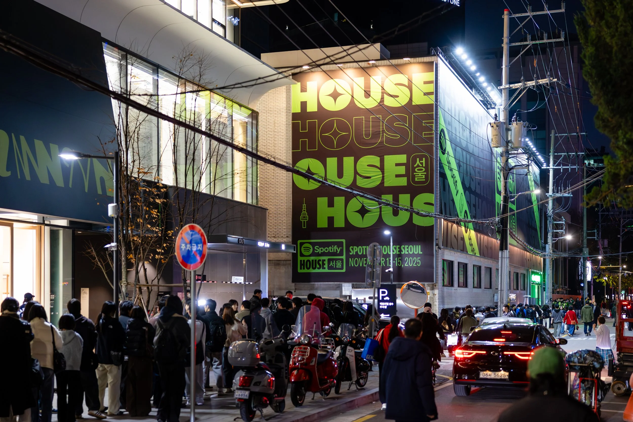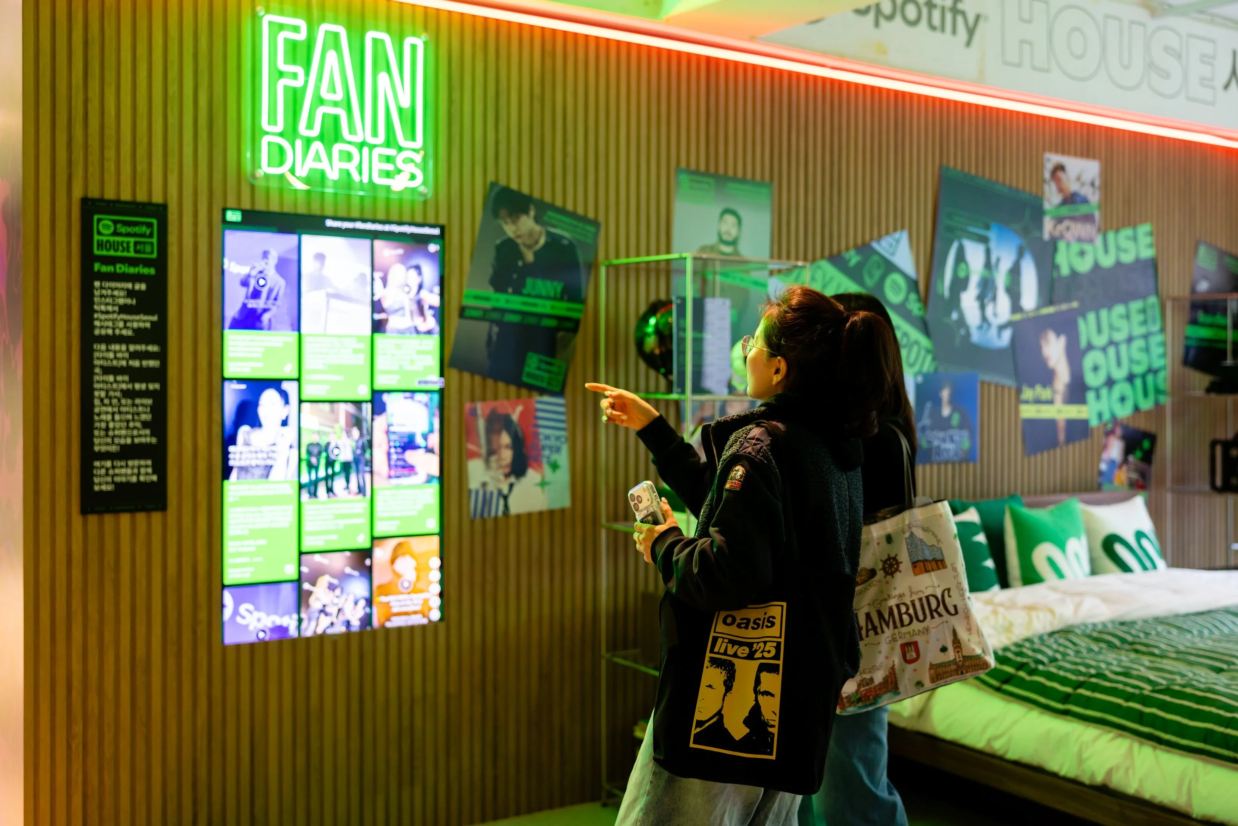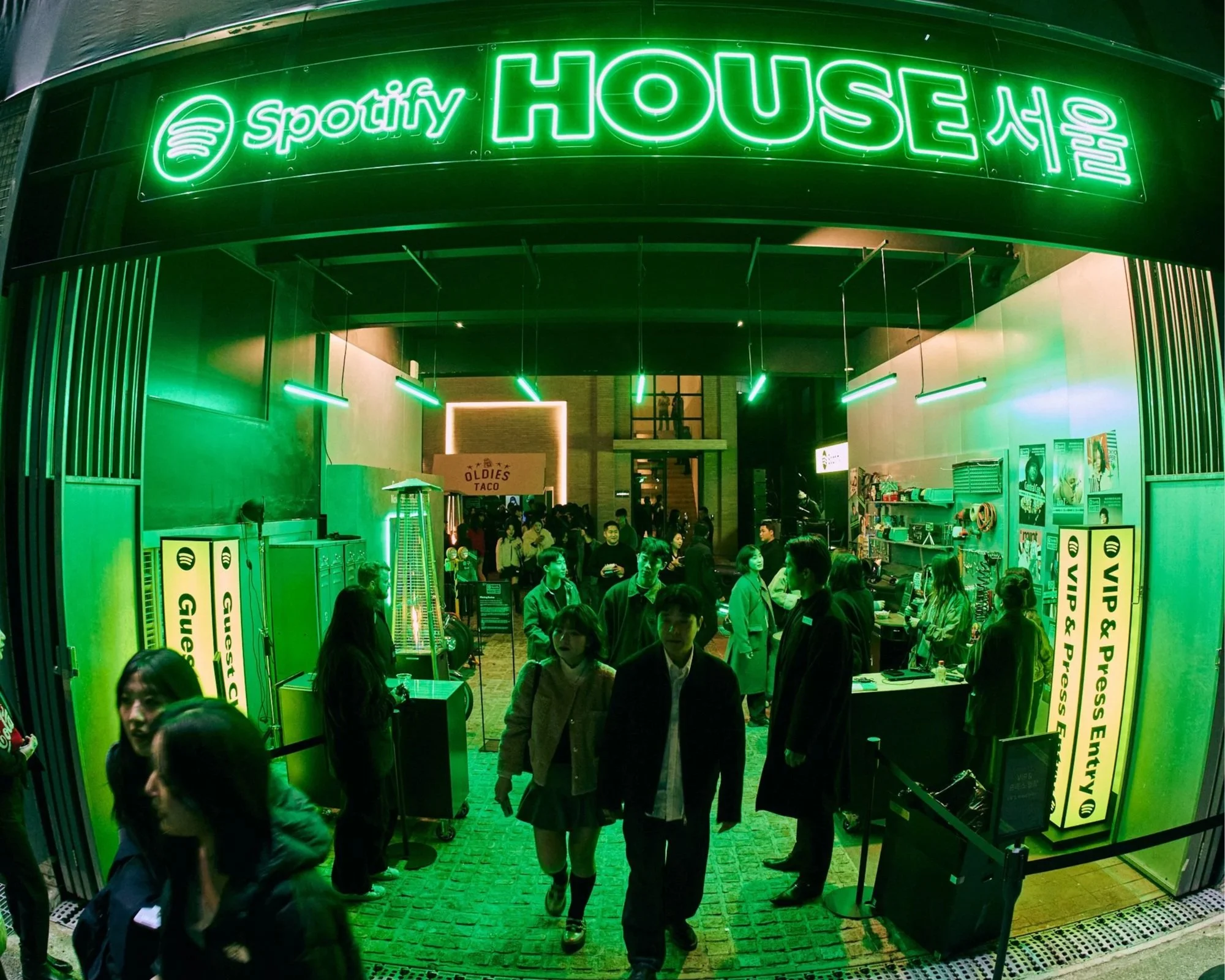 Spotify House Seoul was designed as a three-day living mixtape, where Korean culture met the future of music streaming. Each room, styled after true Korean residential spaces, reflected part of the Spotify experience: the Garage connected fans to their tastes on-the-go, the Kitchen invited in-app exploration, the Living Room hummed with HiFi sound clarity, the Closet was stocked with Korean streetwear from BAPE®, and the Bedroom celebrated fandom in all forms with zines, music diaries, and easter eggs. Outside, the Audiophile Alley came alive with street food, pop-up jams, and neon-lit tents. Each layer of the space was made to be tactile, sensory, and a home for true fans.