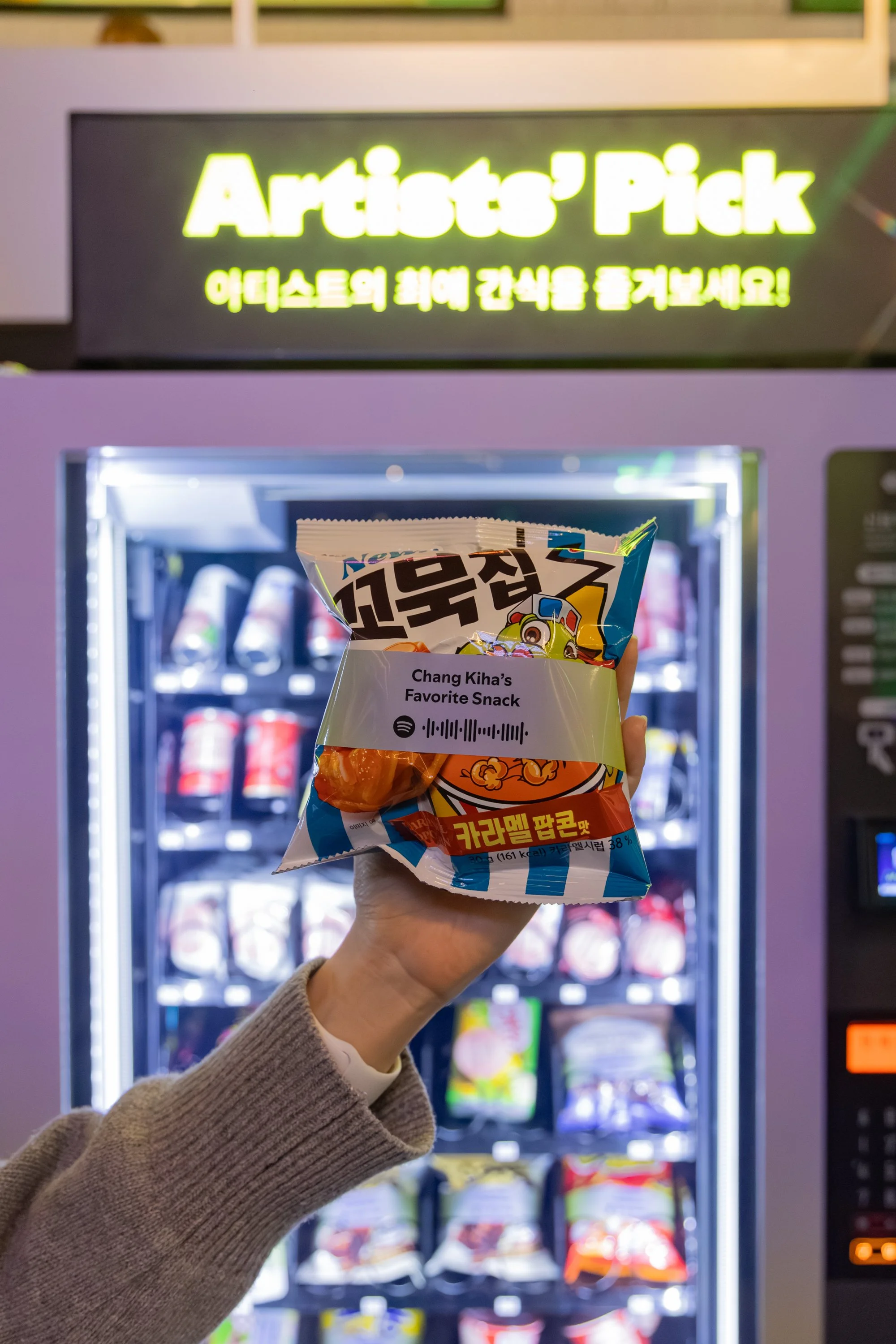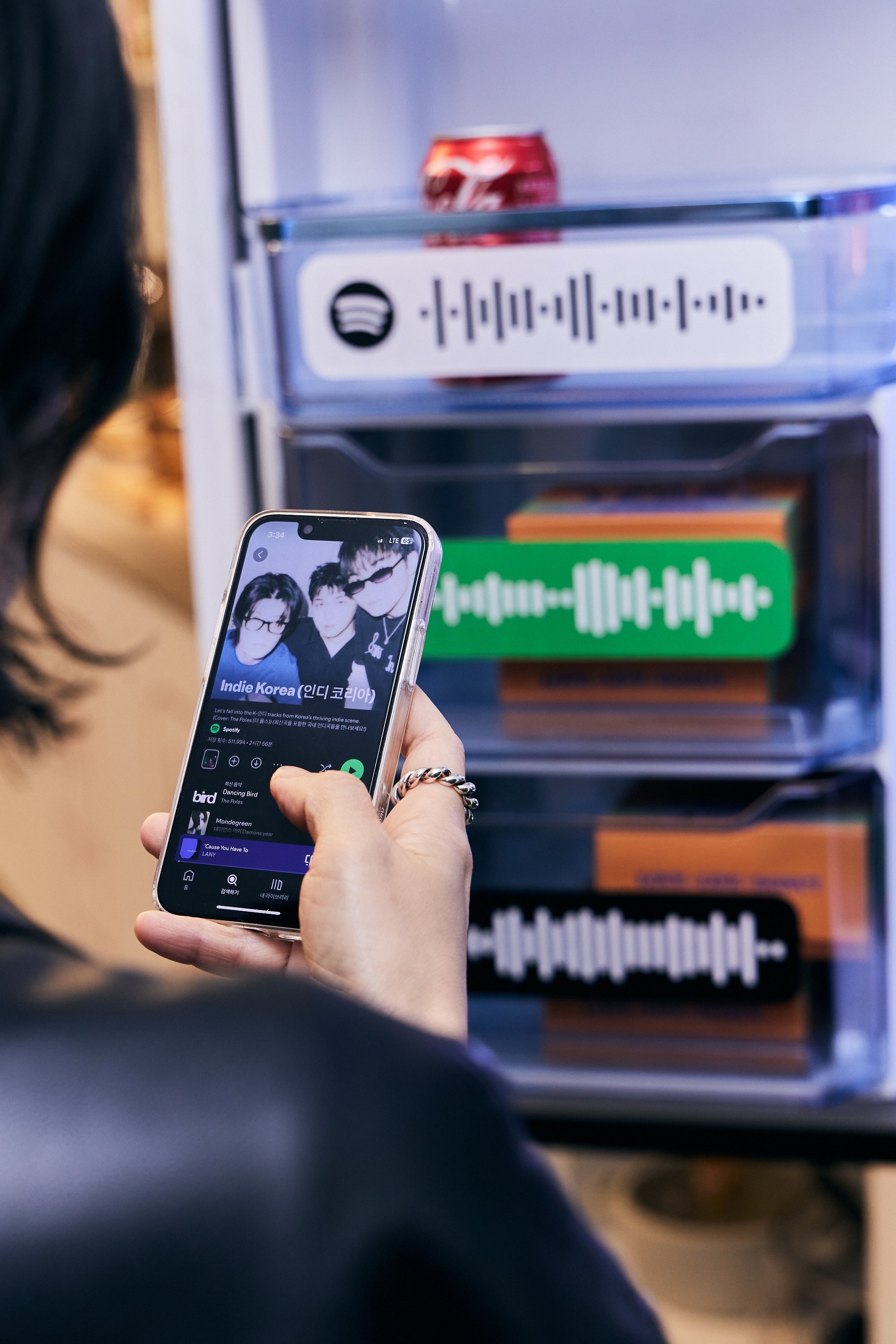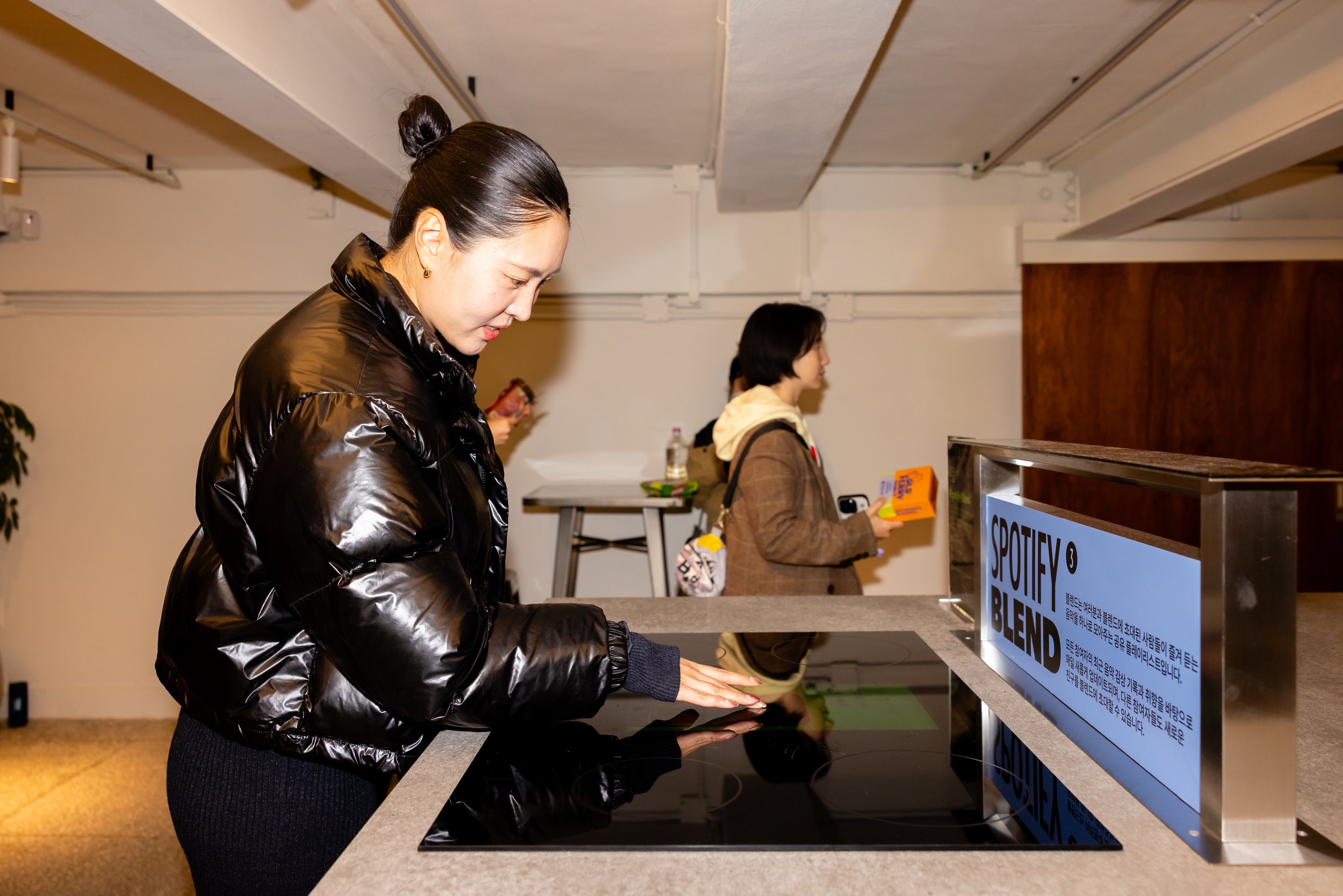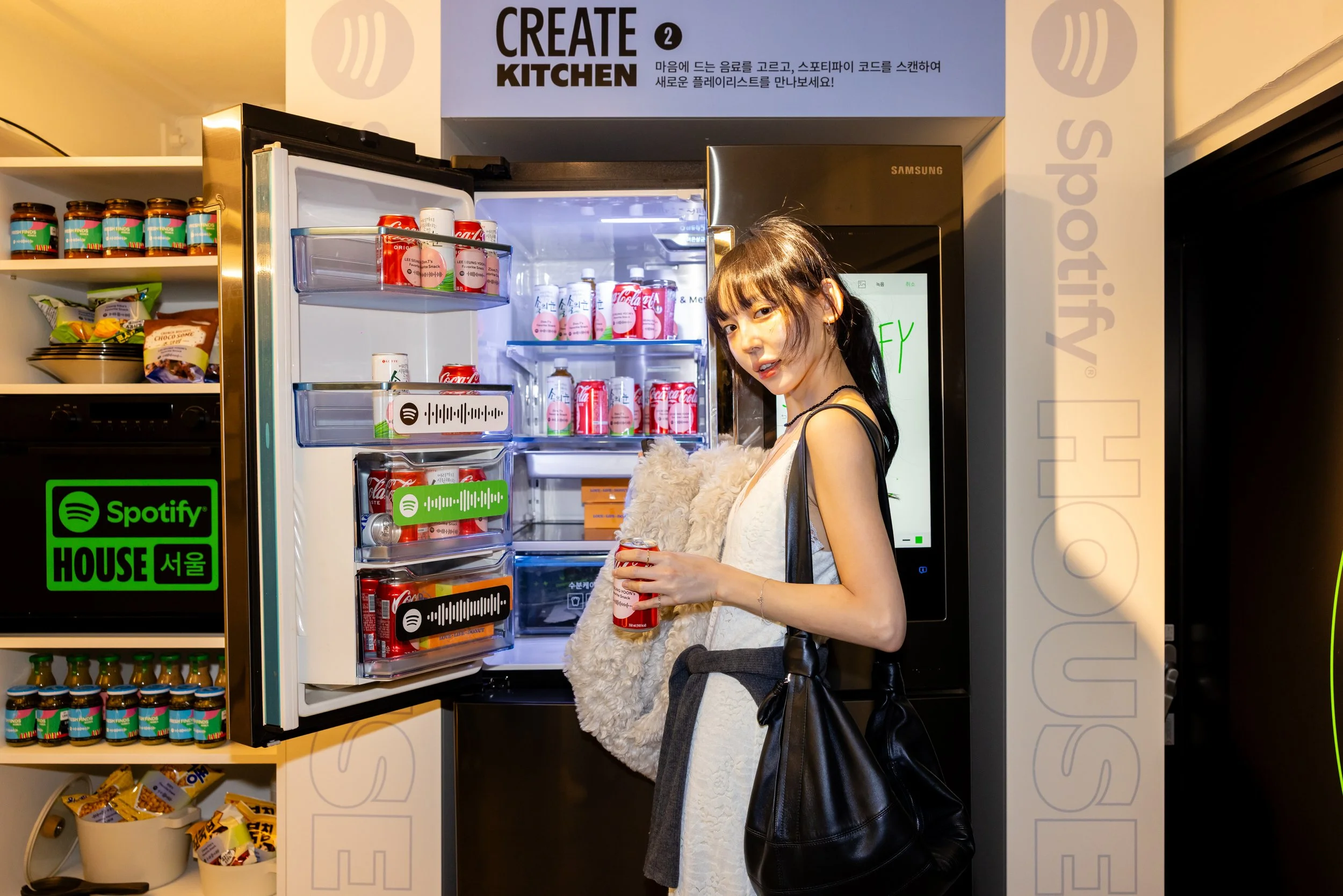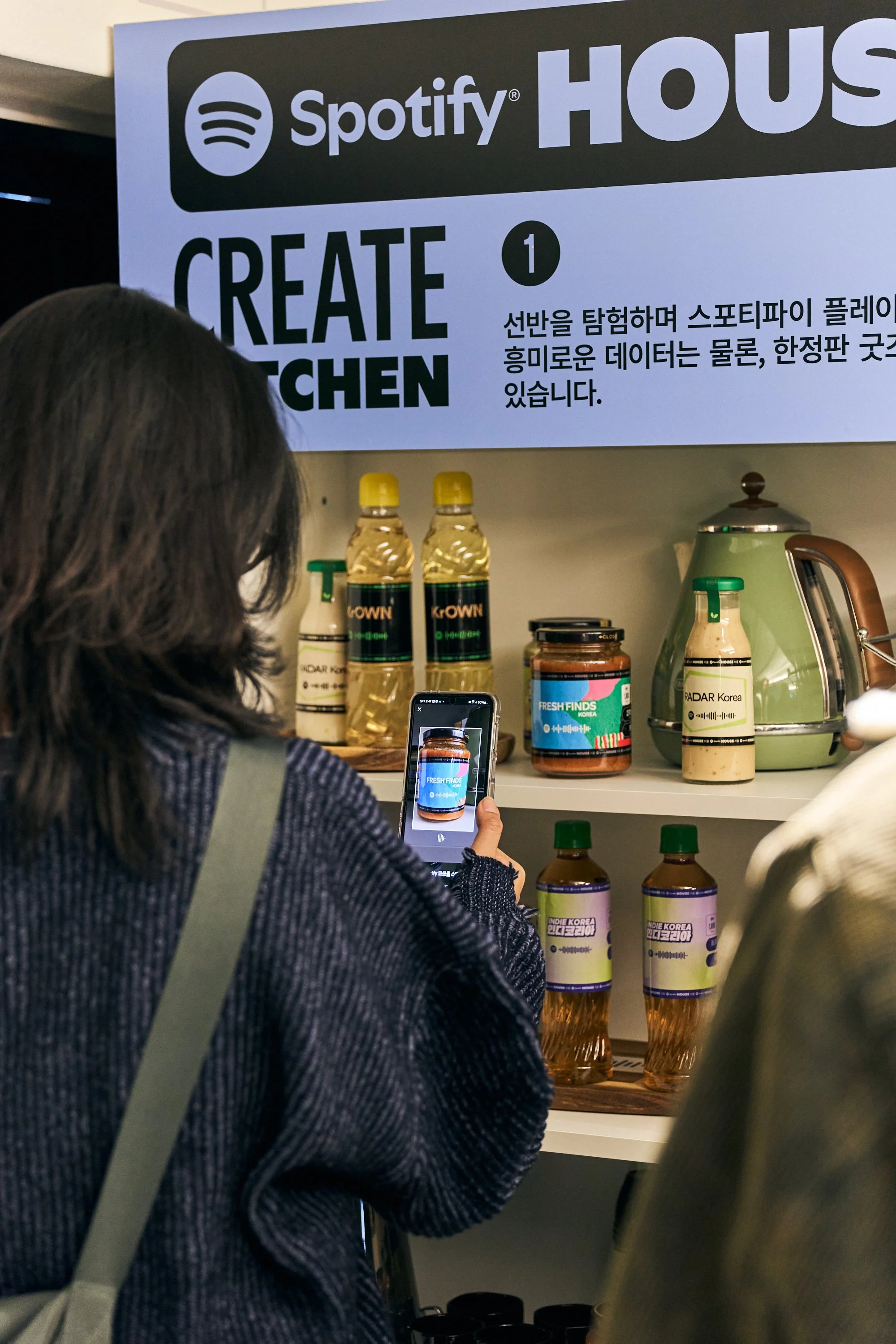In the Spotify Create Kitchen, guests cooked up their own musical vibes and discovered hidden treats. Scannable Jam Jars lined the shelves, prompting guests to join Spotify Jam Sessions and check out new artists in the app. Other branded snack items featured highlighted data from popular Korean Spotify Playlists with codes to access. Saving three playlists granted guests access to a free piece of merch inside the Closet. Guests could also pick one artist-selected drink from the Fresh Finds Fridge which featured a code leading to the artist’s Spotify page.