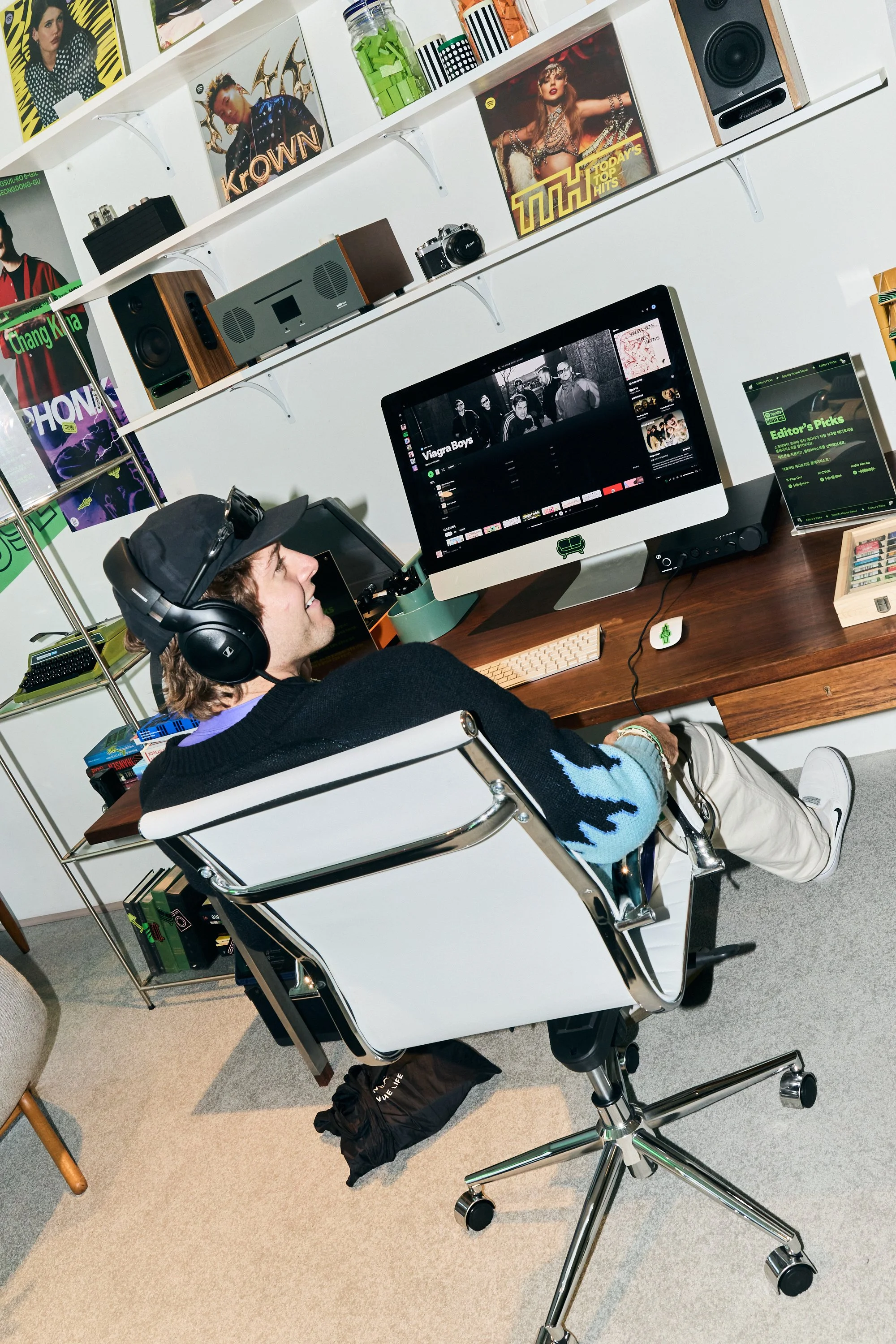 Filled with zines, artist merch, and posters, the Release Radar Bedroom channeled pure fan energy. Guests could scan a QR code to add to the Fan Diaries, sharing the tracks and artists that shaped their year; they could curl up in the den to check out new artist music videos and skim a zine; or they could check out Spotify Editors’ top picks at the desk.