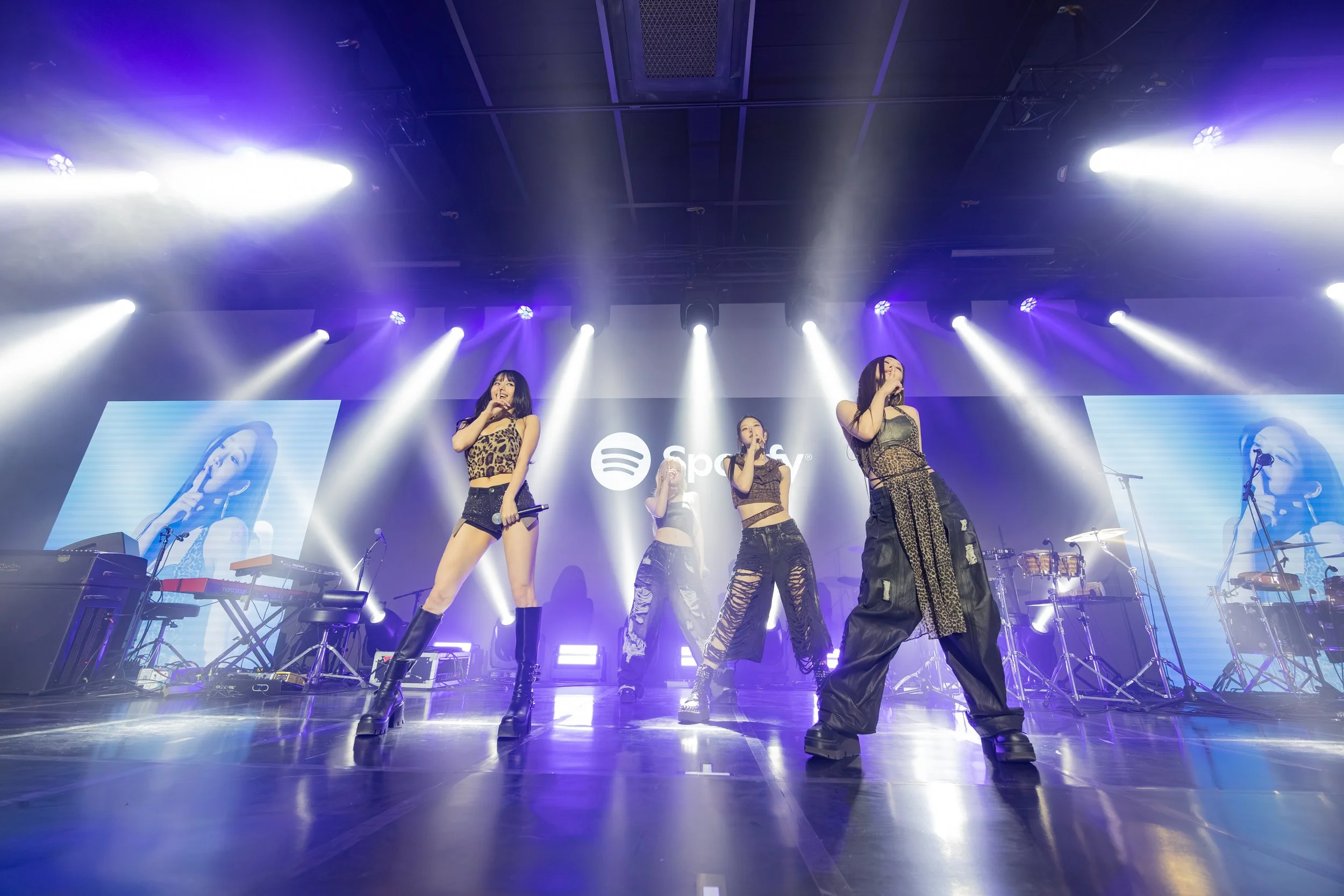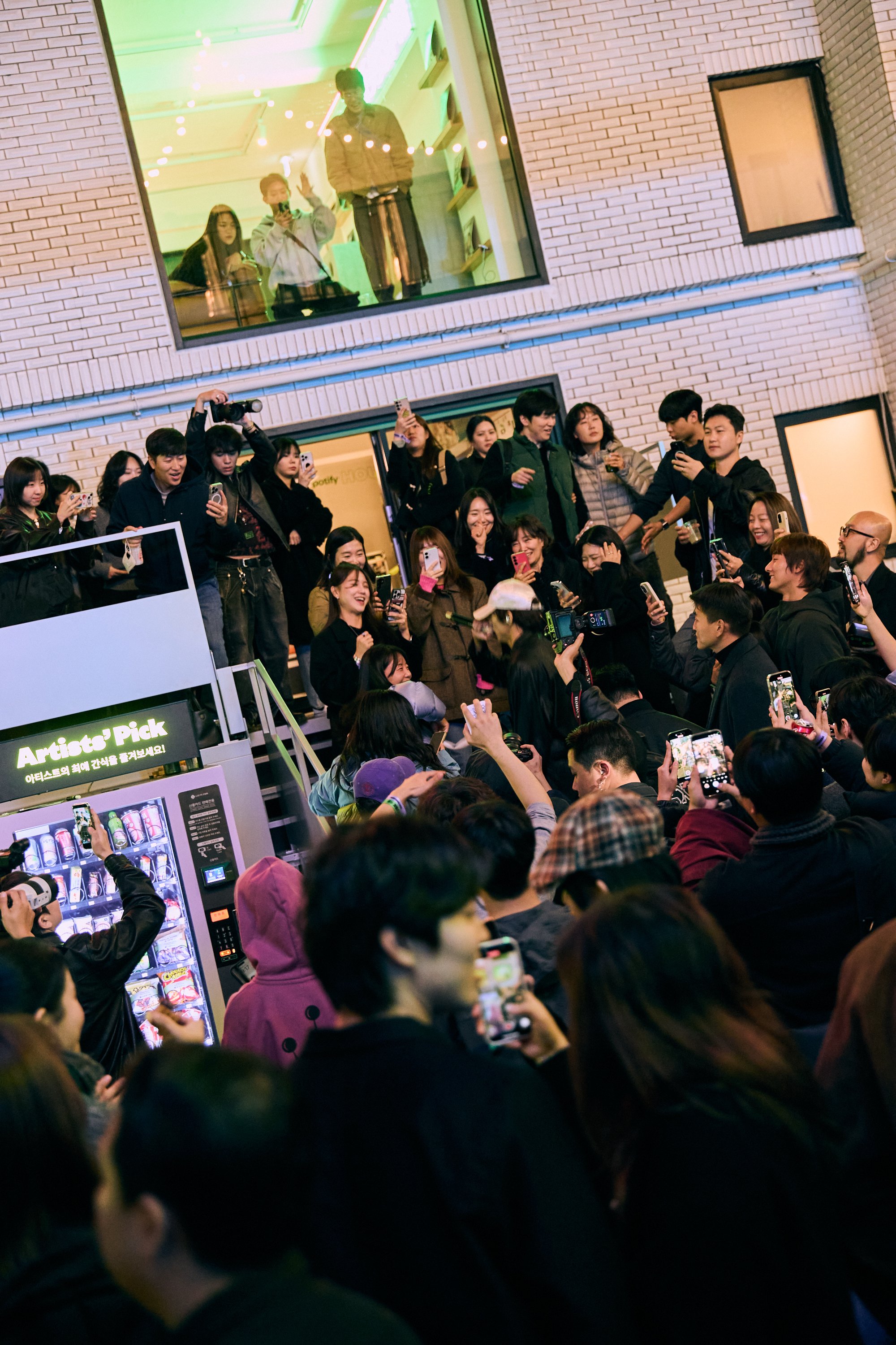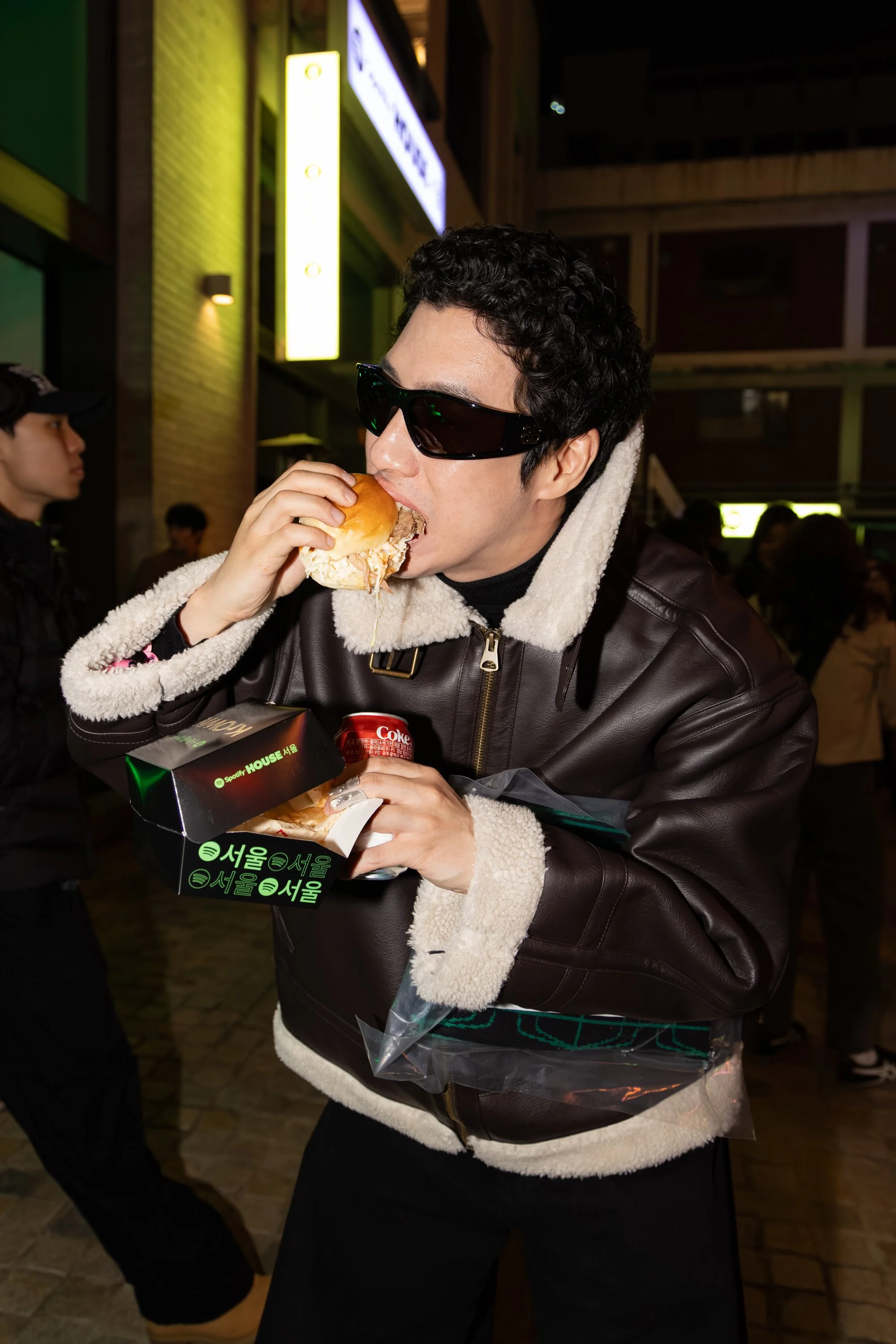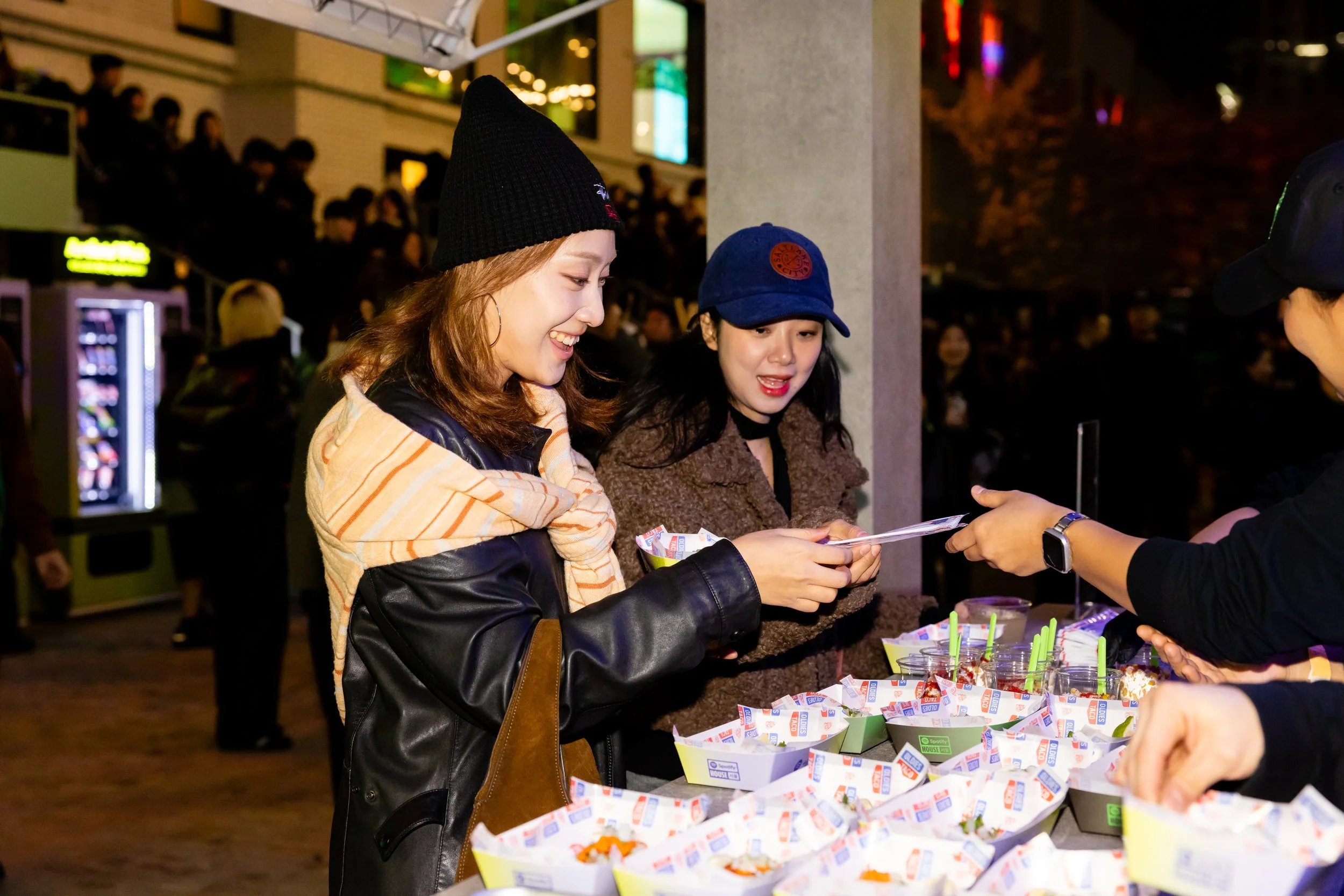 Alive with sound and spectacle, Audiophile Alley was where the full scale of the experience unfolded. Sound Bites Bars served bites to match playlists–K-Pop ON!, KrOWN, and Indie Korea–and the Jam Session Bar let guests contribute to a Collaborative Playlist while sipping drinks. Dessert Carts offered sweet treats, DJs spun live on a satellite stage, photo booths invited guests to pose in a branded space, vending machines allowed guests to snack like their favorite artists, and window takeover scenes depicted how Spotify integrates into everyday life. At the end of each night, the doors to the second building would open, revealing a hidden venue where artists like Central Cee, The Kid Laroi, and Jay Park performed for the crowd gathered in the Alley.